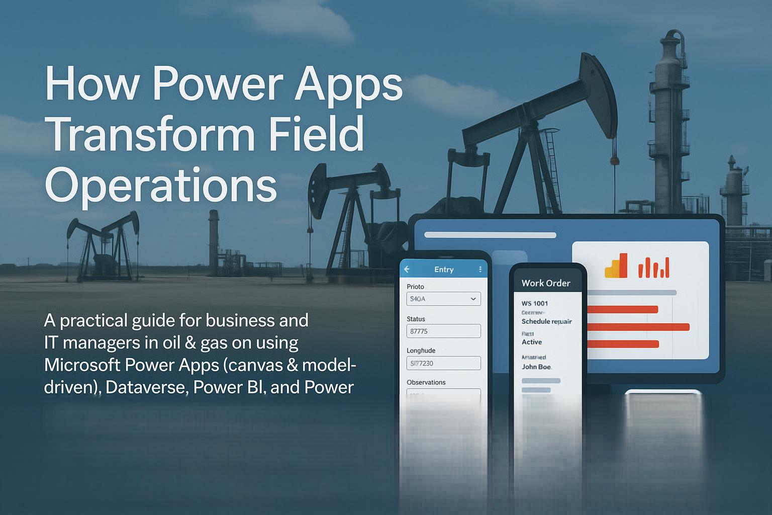 A practical guide for business and IT managers in oil & gas on using Microsoft Power Apps (canvas & model-driven), Dataverse, Power BI, and Power Automate to modernize field operations—from data capture and real-time reporting to maintenance, safety, and legacy integration.